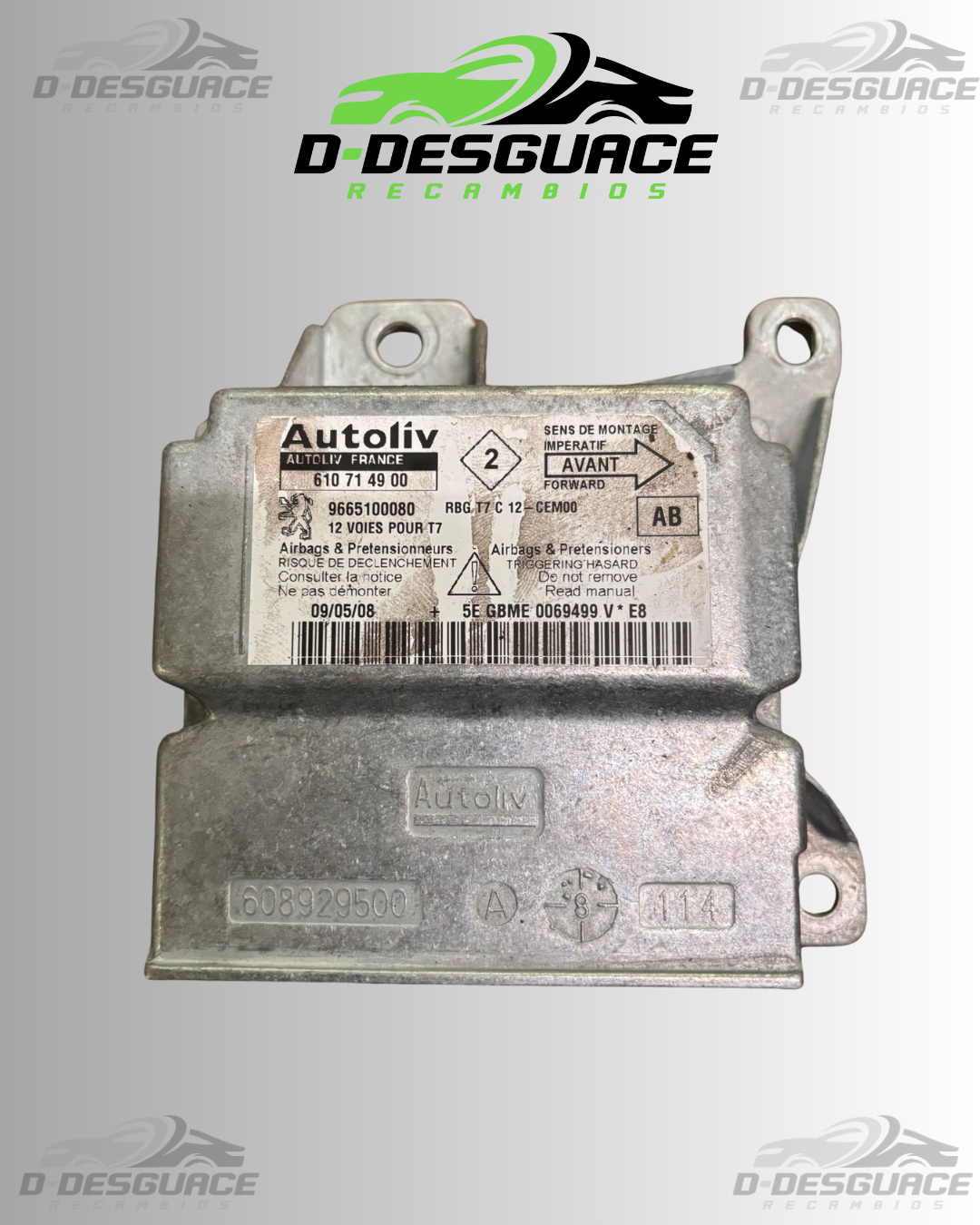 Centralita airbag para Peugeot 308 1.6 HDi (2007–2011), referencia 608929500. Pieza usada en excelente estado, sin grietas ni roturas. Diseño original Peugeot, ideal para garantizar una activación precisa del sistema de airbags en caso de colisión. Compatible exclusivamente con el Peugeot 308 1.6 HDi (2007–2011).