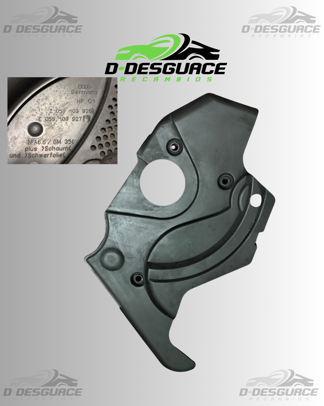 Protector inferior de distribución para motor 2.5 TDI VAG. Referencia 059103926B, pieza usada en excelente estado, sin grietas ni roturas.